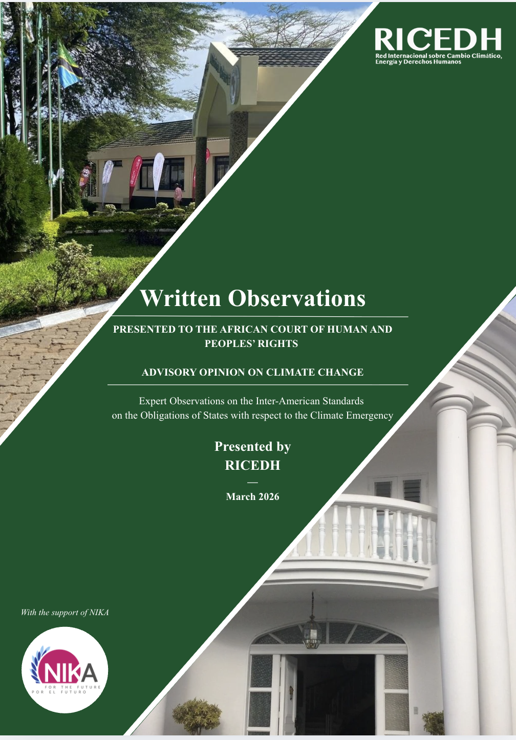Written observations submitted by the RICEDH to the African Court of Human and Peoples Rights in connection to the request for an advisory opinion by PALU on climate change and human rights. The written observations were elaborated in collaboration with NIKA: with our leadership (Theresa Amor-Jürgenssen and Ecab Amor Vazquez) serving as editors and coordinators of the amicus, and our team playing a key role in the design, formatting, standardization and fine detail work.